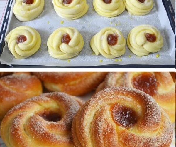 Se trata de bollitos suaves y esponjosos, con una forma trenzada o enroscada que los vuelve visualmente irresistibles y un centro de mermelada que aporta humedad, color y sabor. Son ideales para acompañar un desayuno tranquilo, una merienda compartida o incluso para servir en una mesa dulce. Además, se preparan con ingredientes accesibles y un paso a paso sencillo, por lo que no hace falta ser experto en panadería para lograr un resultado espectacular.